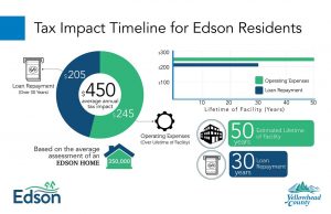 The Town of Edson will be using a combination of $20-million in savings and $15-million in borrowed money to cover our portion of the construction costs. This means Edson residents and business owners can expect to see an increase in taxes to cover the cost of the borrowed funds and anticipated operational expenses.